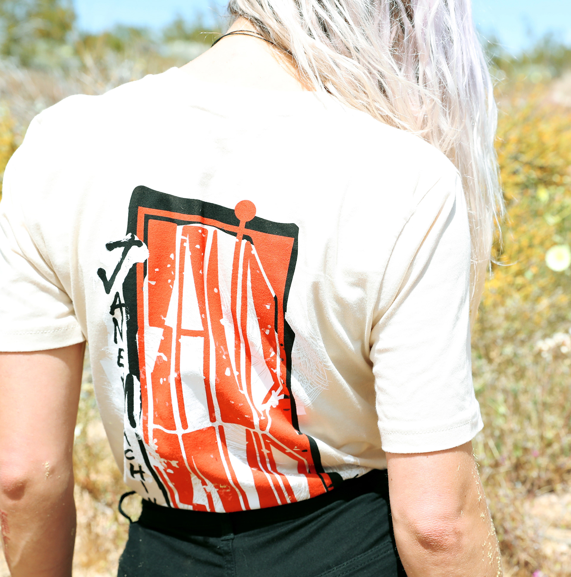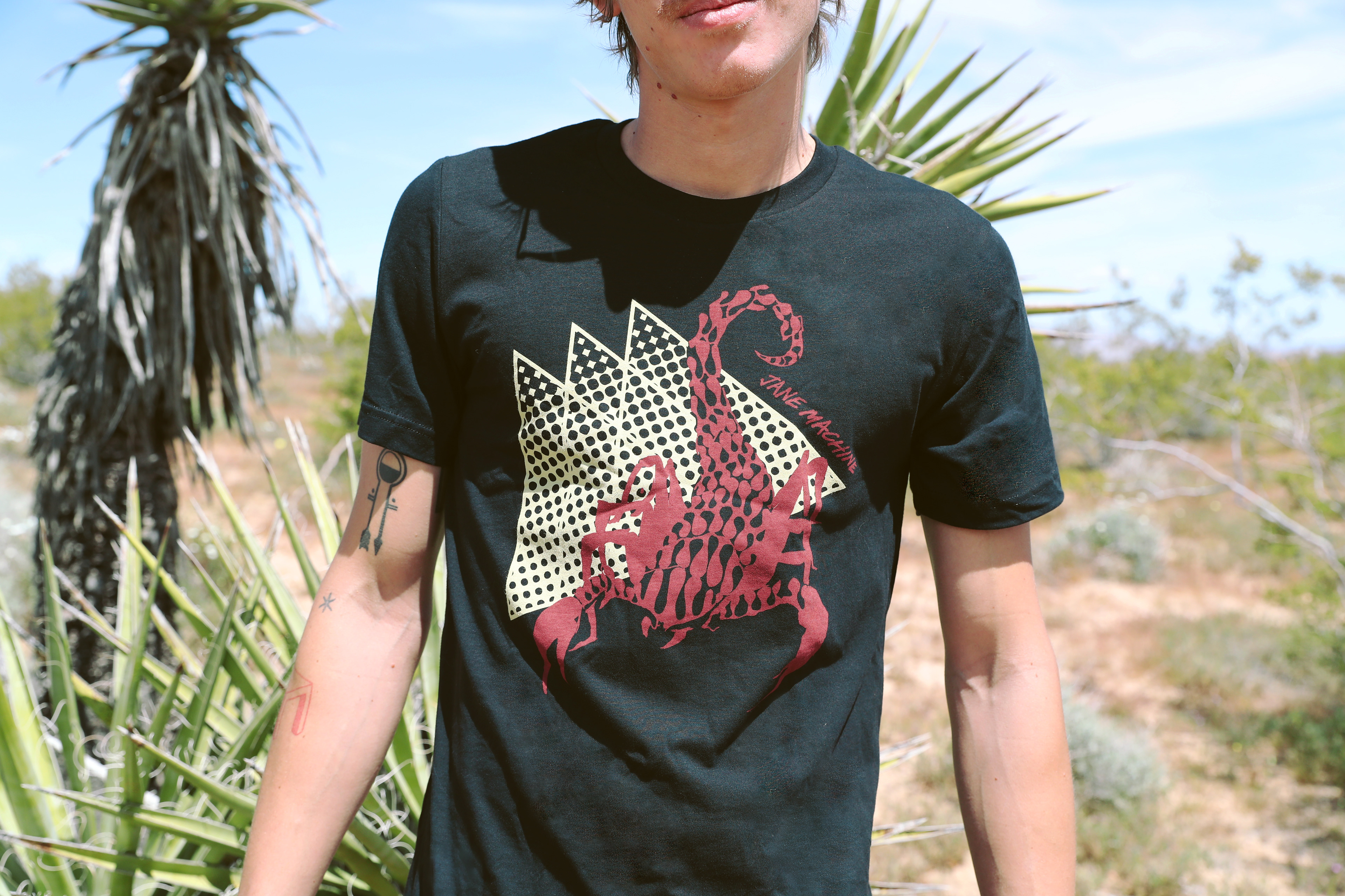 I approached the release as a mini identity system, using the scorpion, or "sand squid", motif across type, pattern, and composition to create a cohesive visual language. The shirts were printed in limited quantity and sold on the Jane Machine website and live concerts.