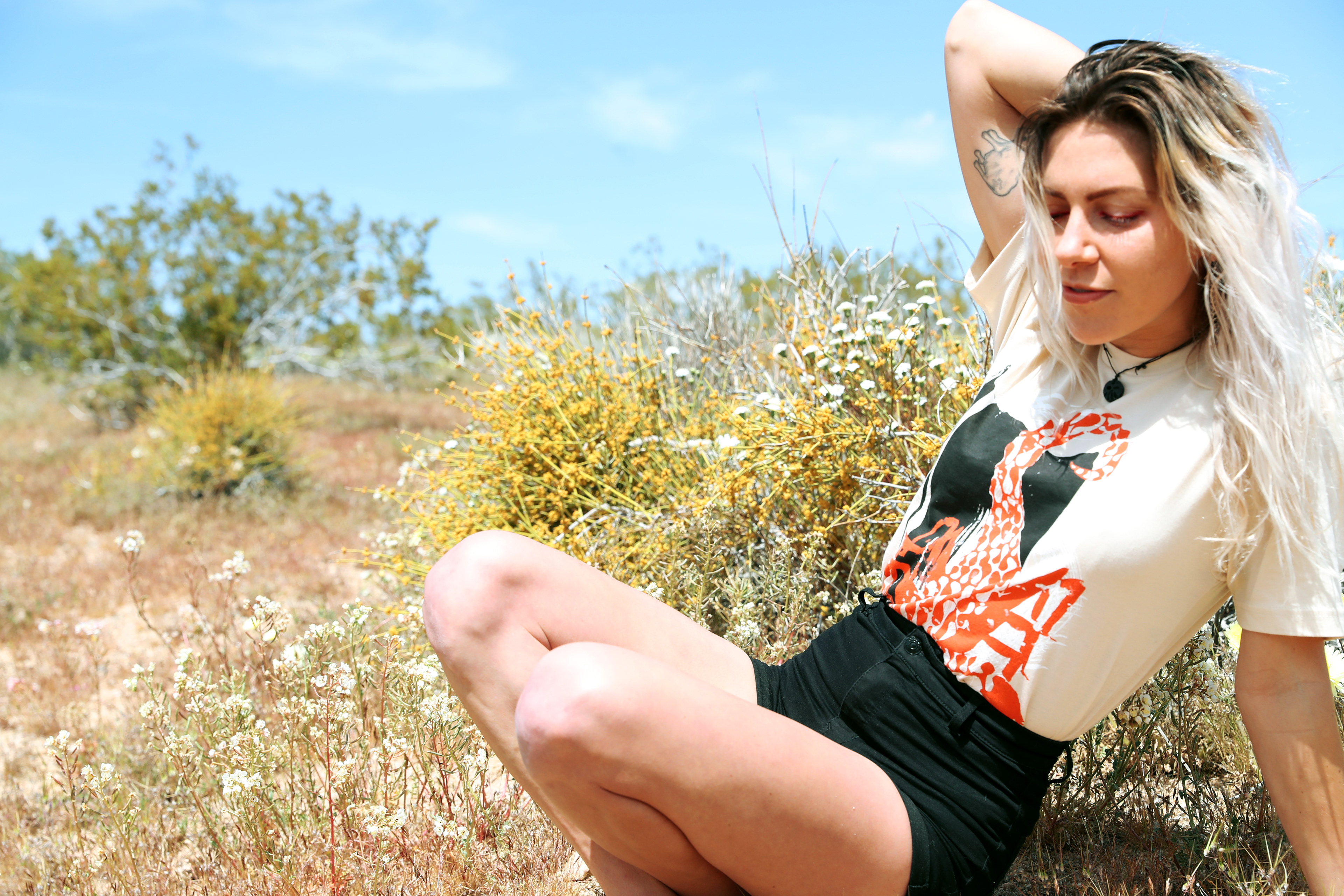 For Jane Machine’s “Sand Squid” single, I built a commissioned graphic merch system that treats the scorpion as both symbol and texture. The designs mix distorted typography, pattern fields, and harsh desert palettes to create something between poster art and wearable artifact.