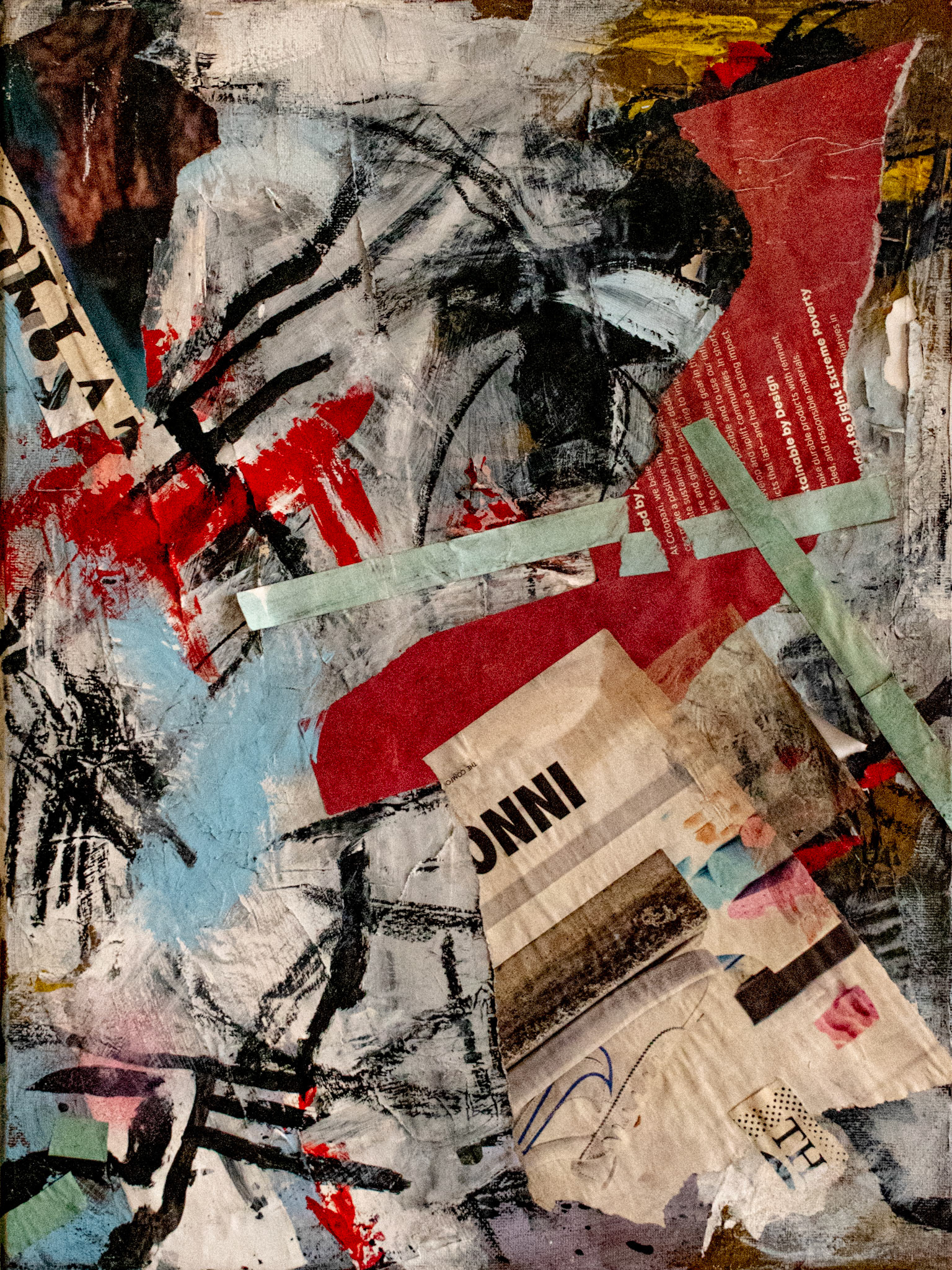 'No Direction' || Collage, Acrylics, Oil Pastel on Canvas